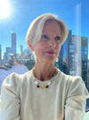 Where timeless rebellion meets opulent defiance, meet The Caroline Necklace. A chunky gold-filled chain sets the stage for shimmering pearl squares, vibrant ruby and sapphire toned gems and a sunburst medallion. Think: historical grandeur meets modern-day edge. Designed to be the focal point of your look, layered over a blouse or sweater with a skirt or jeans, let it add a dose of unexpected glamour.