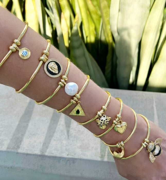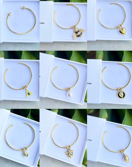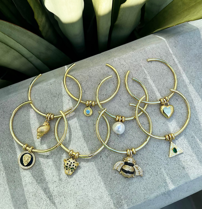 YOUR BRACELET, YOUR WAY. Choose Your Charm Bracelets are here! Begin with our essential basic bangle, a versatile piece that effortlessly compliments any look all by itself or dive into our range of unique charms. Pick your favorites directly from the dropdown menu and begin your charm journey! From subtle statements to vibrant expressions, craft a piece that truly reflects you. Perfect for gifting!
