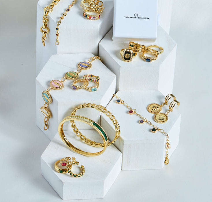 Gold filled curb cable chain link bracelet with cz micro pave diamonds.