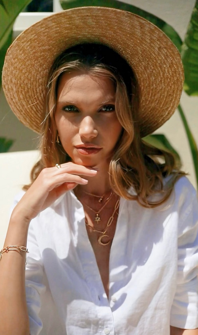 Gold-filled paperclip style chain with a large cz micro pave crystal crescent moon pendant.