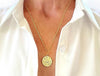 Gold filled detailed chain complete with a gold filled medallion featuring stars, moons and micro pave cz crystals.