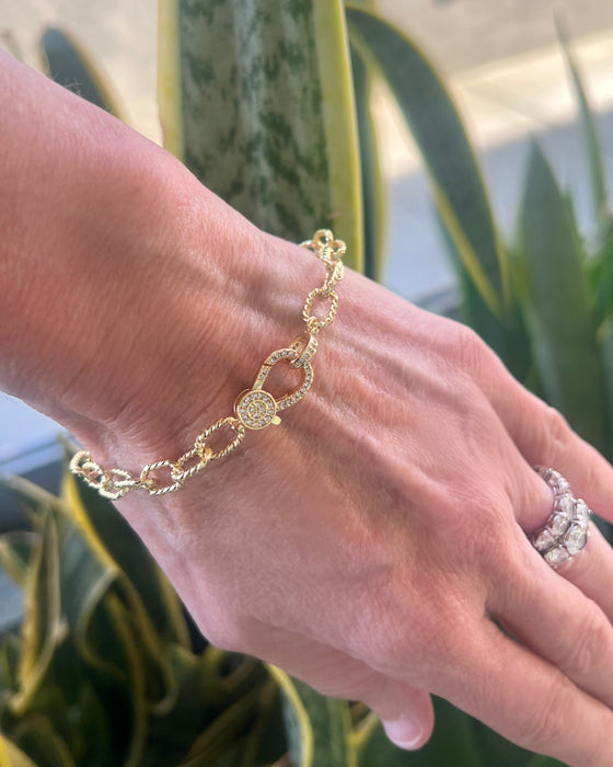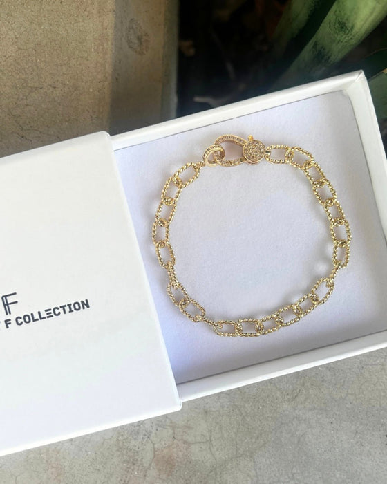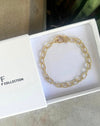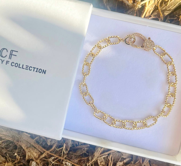 Luxurious and divine! This gold filled paperclip style bracelet attaches with a gold filled micro pave lobster clasp.