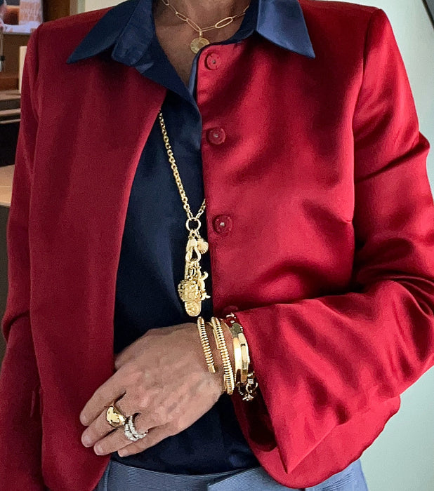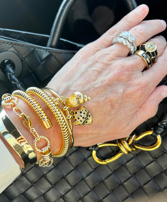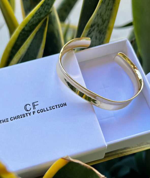 Discover the Sculpted Bangle: a statement piece that feels like wearable art. Its defined form and gold-filled, polished gleam will set you apart, adding an instant touch of unique style to any look. Embrace the beauty of intentional design.